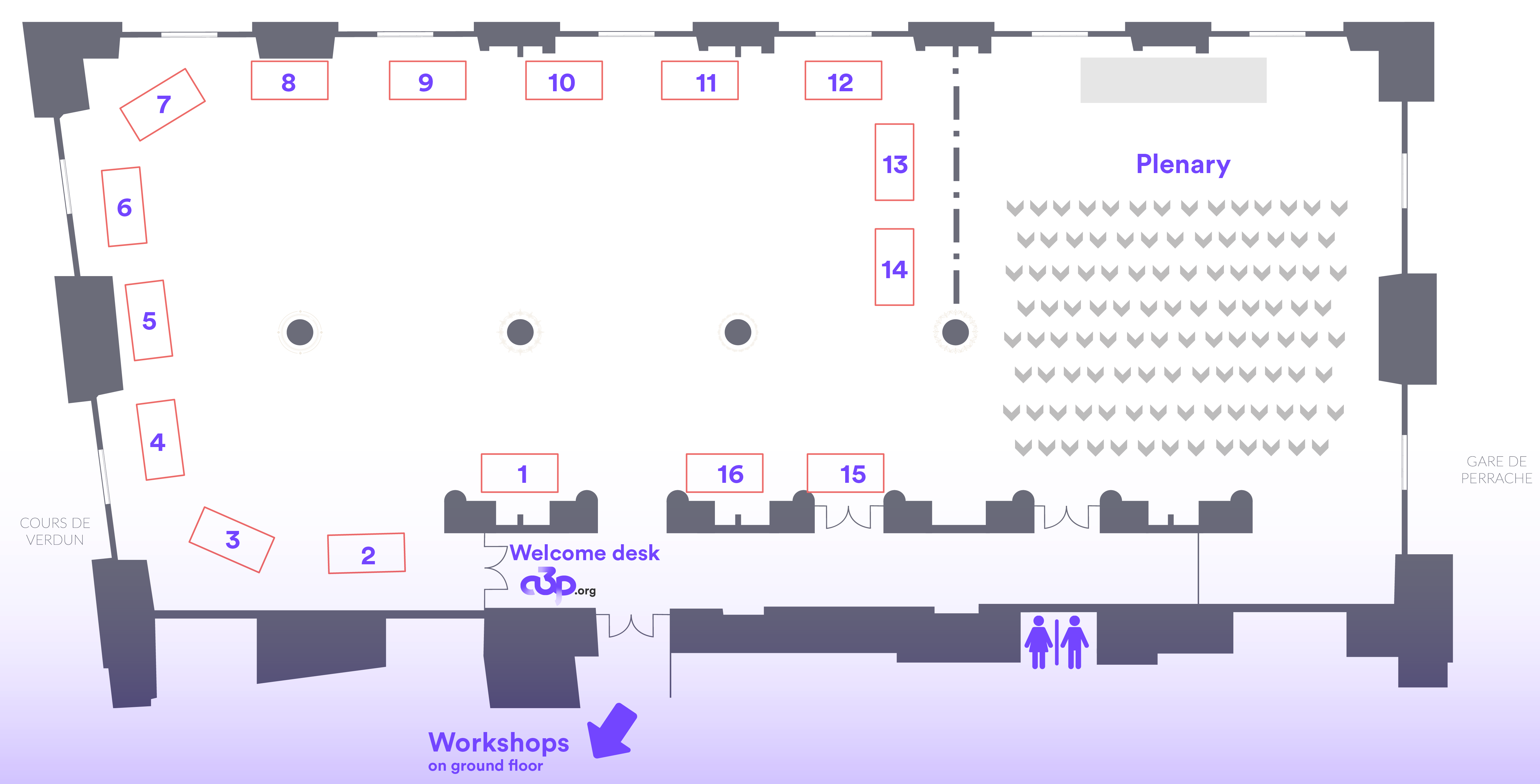 - An exhibition space (approximately 2m x 2m) where you can set up your products and communication tools: pop-up stand, roll-up banner, display stand, etc. (max. height 2m)